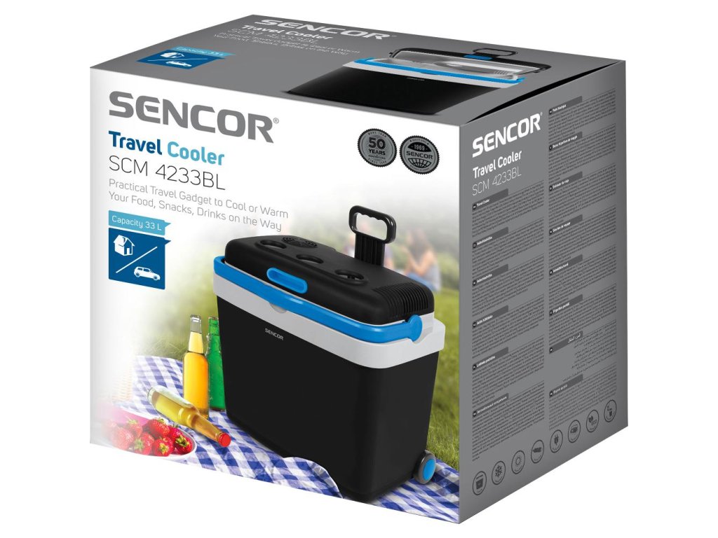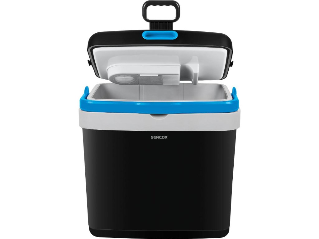 Autochladnička Sencor disponuje vysúvacou rukoväťou a veľkými kolieskami, ktoré uľahčujú jej prepravu. Dvojitý uzatvárací systém predchádza vzniku poranení pri používaní. Duálne napájanie umožňuje použitie v sieťovej zásuvke alebo autozapaľovači. Pri zapojení do elektrickej siete sa spustí režim ECO, ktorý chladničku automaticky vypne po dosiahnutí 12°C.