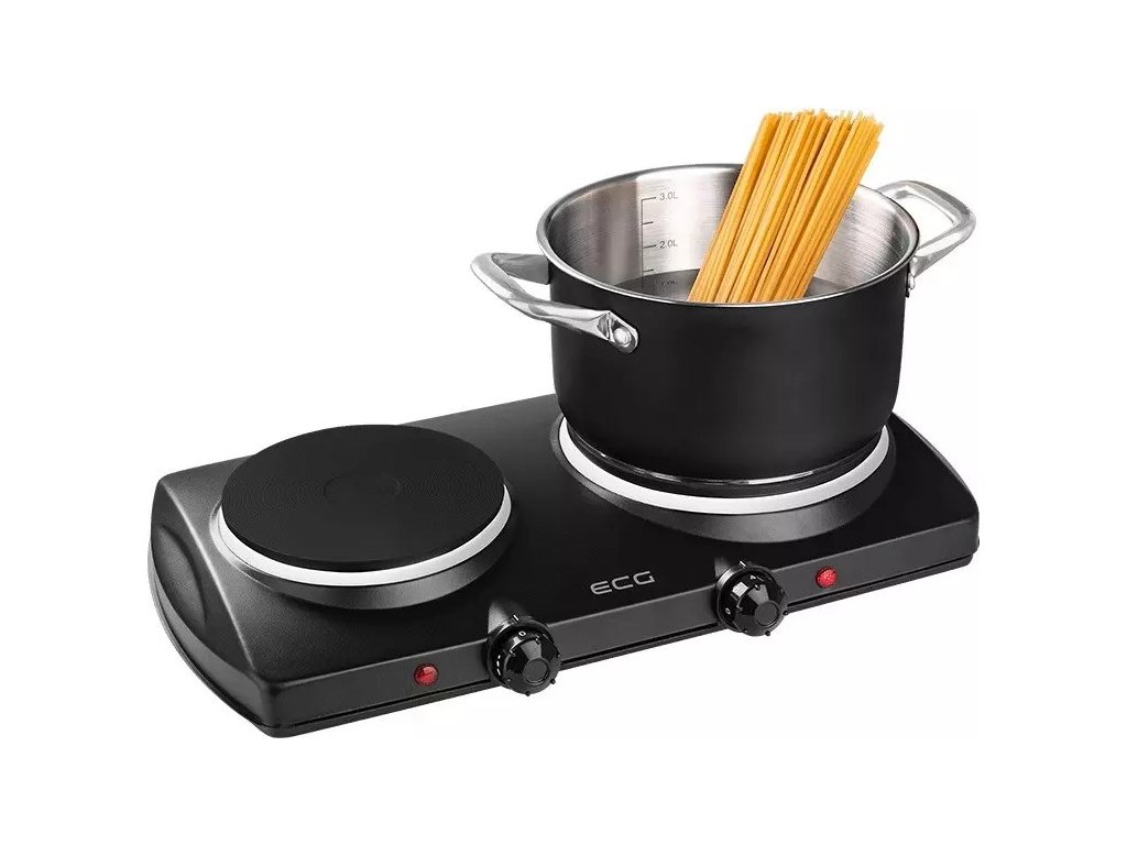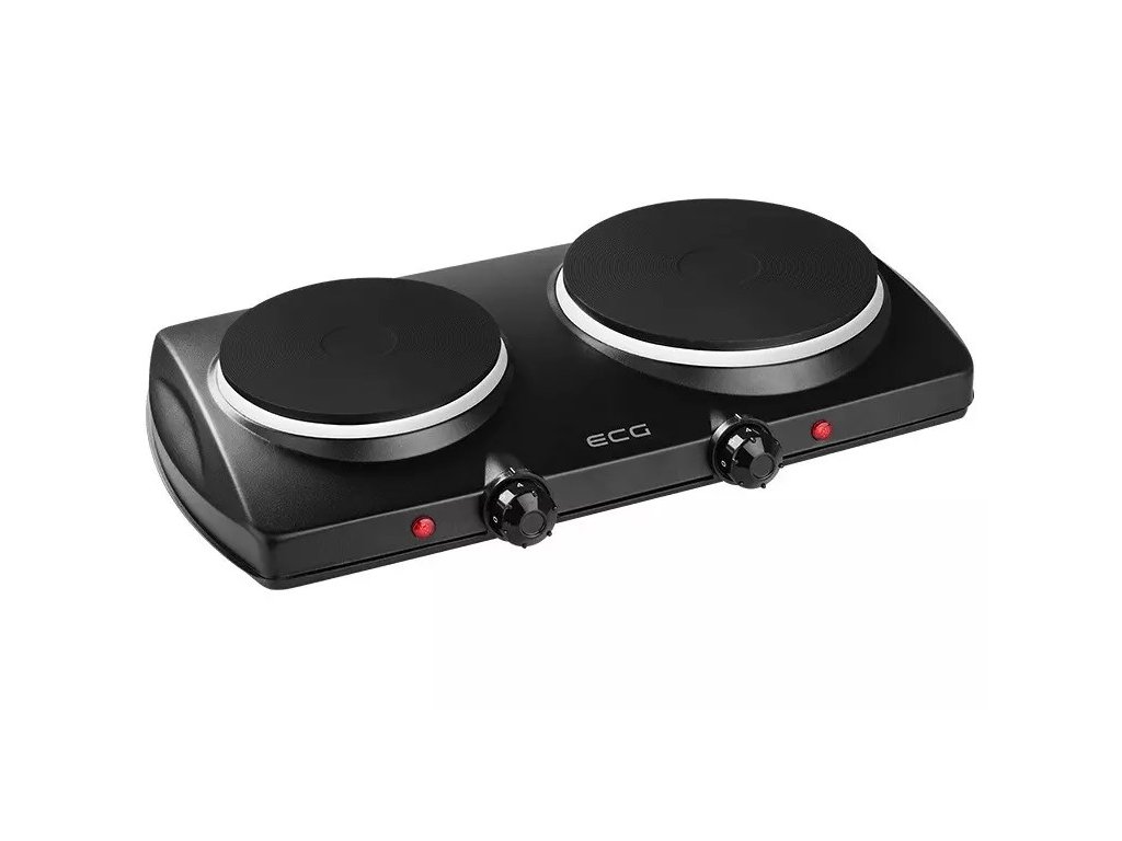 Elektrický dvojplatničkový varič využijete nielen v malých kuchyniach, ale aj na chalupách alebo v kempoch. Maximálne spokojní potom budete s elektrickým varičom ECG EV 2512 v čiernom prevedení. K dispozícii máte dve platničky s priemerom 18,5 cm a 15,5 cm (príkon 1500 W + 1000 W), na ktoré môžete dať menšie aj väčšie hrnce či panvičky. Výkon varných zón nastavíte pomocou päťstupňových otočných voličov.