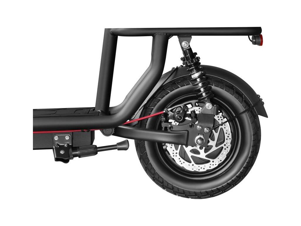 elektrická kolobežka • výkon motora 350 W • max. dojazd 30 km • max. rýchlosť 25 km/h • 12" nafukovacie kolesá • čas nabíjania cca 6 h • zadné a predné odpruženie • svetlá • nosnosť 120 kg • hmotnosť 23,6 kg