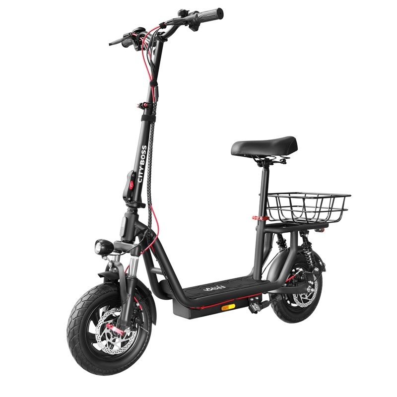 Vďaka elektrickej kolobežke City Boss Z350 so sedadlom sa môžete po meste pohybovať pohodlne, svižne, ekologicky a hlavne po svojej osi. Vďaka 350 W motoru, dojazdu až 30 km a výbornému odpruženiu zvládne ako mestskú prevádzku, tak jazdu po cyklotrasách, dlažbe aj mierne nerovnom teréne – napríklad pri víkendovom výlete za priateľmi alebo mimo mesta. Model Z350 je vybavený 12" nafukovacími kolesami, tlmičmi vpredu aj vzadu a širokými riadidlami – to všetko dohromady znamená stabilné a komfortné zvezenie. Bezpečnosti potom prospieva osvetlenie a z praktického pohľadu poteší napríklad úložný košík – napríklad na prevoz nákupu.