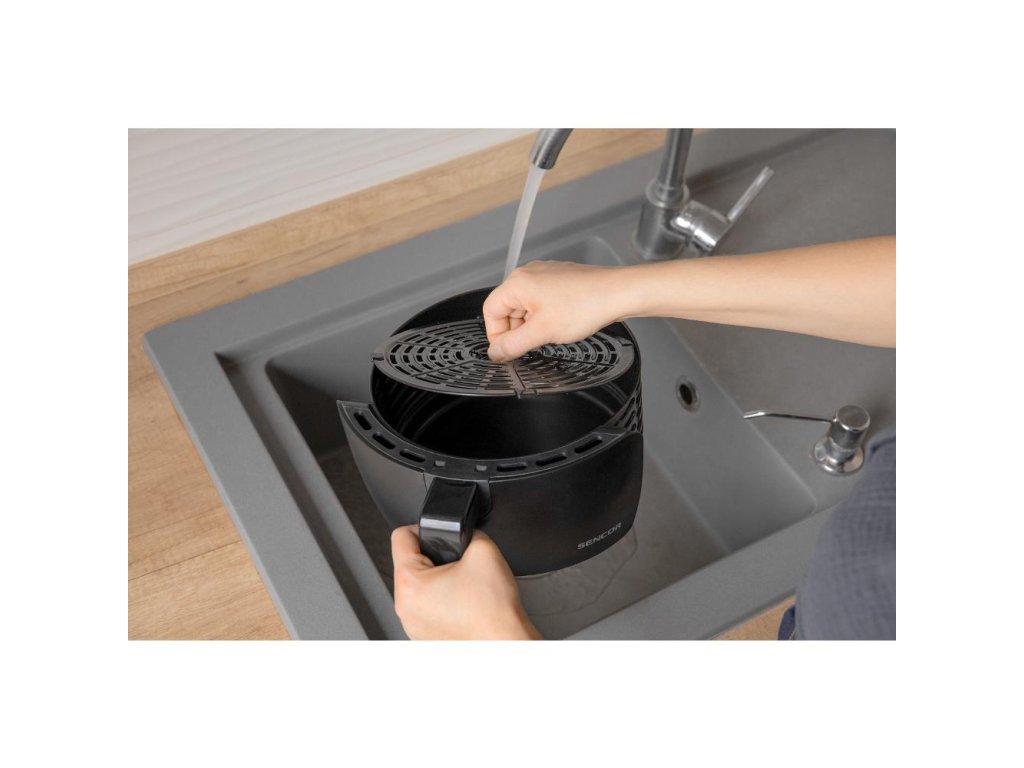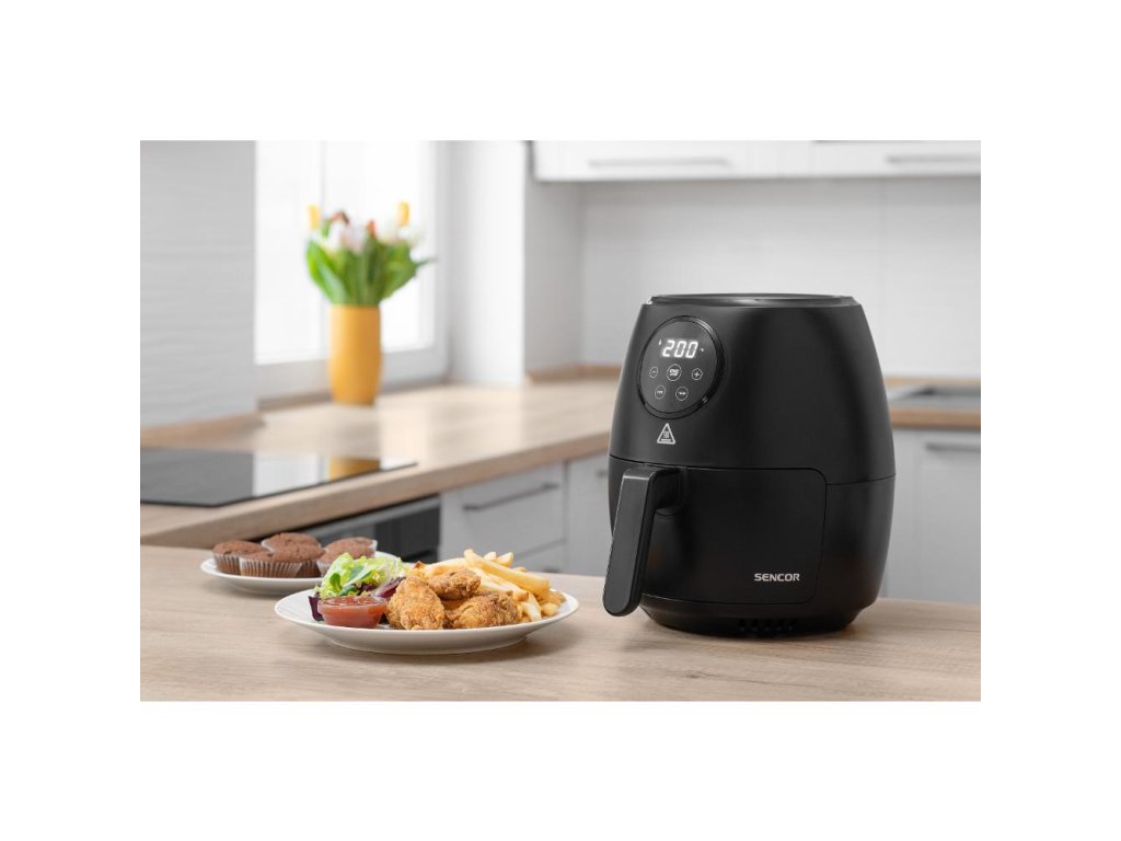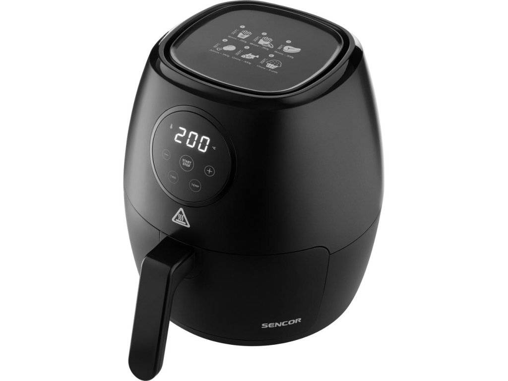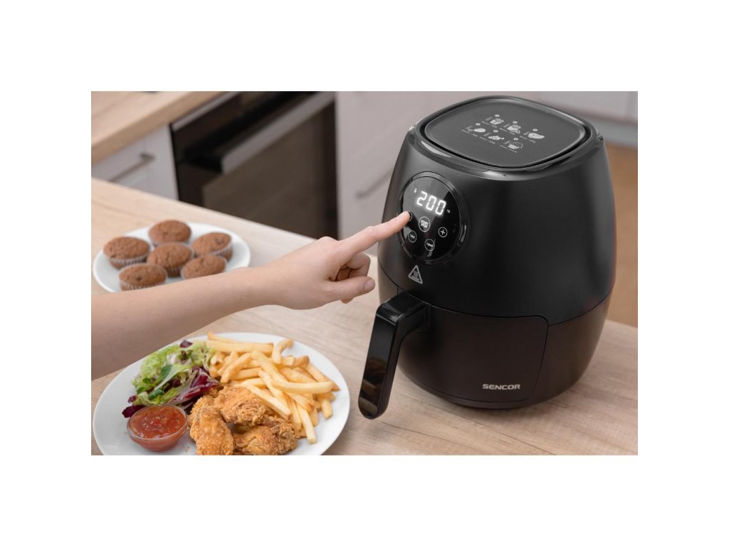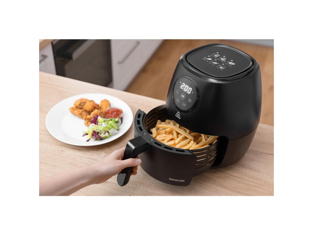 Teplovzdušná fritéza SENCOR SFR 5030BK je vybavená prehľadným LED displejom a časovým spínačom na 60 minút so zvukovou signalizáciou. Všetky pripravované suroviny jednoducho vložíte do vyberateľného fritovacieho koša s nepriľnavým povrchom a prostredníctvom dotykových ovládacích senzorov nastavíte tak, ako potrebujete. Prístroj je tiež vybavený bezpečnostnou poistkou, ktorá zabraňuje nechcenému vybratiu koša. Povrch fritézy zostáva aj po zapnutí chladný, teda nehrozí pri kontakte žiadne popáleniny. Po skončení varenia sa fritéza sama automaticky vypne.