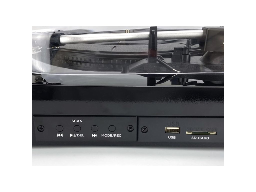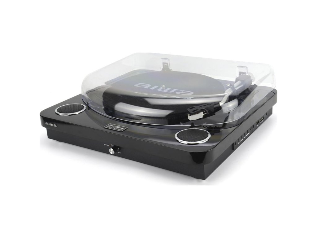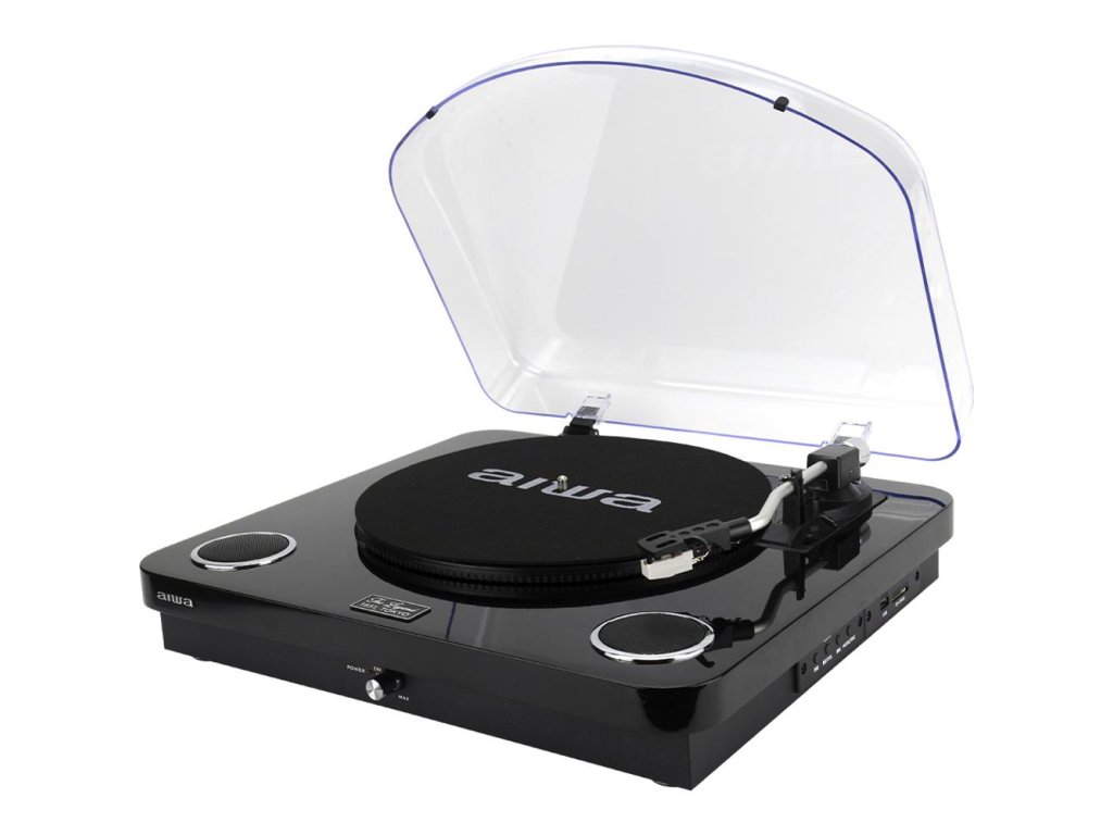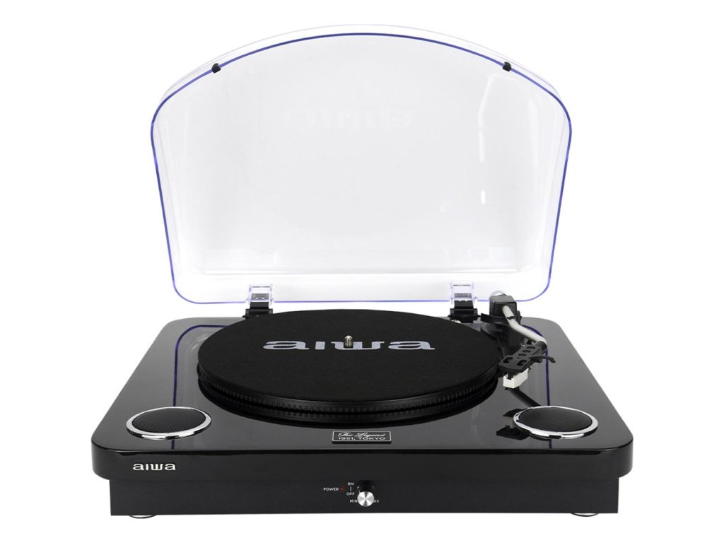 AIWA GBTUR-120BKMKII je štýlový gramofón, ktorý kombinuje elegantný vzhľad s radom funkcií. Umožňuje prehrávanie klasických vinylových dosiek v 3 rýchlostiach (33, 45, 78) pomocou rubínovej ihly na tanieri s priemerom 27,5 cm. Zariadenie má tiež Bluetooth, FM rádio, vstupy pre USB disky a SD karty. Vďaka vstavaným reproduktorom s výkonom 2× 5 W (RMS) si môžete hudbu z gramofónu vychutnať bez nutnosti pripojenia ďalších zariadení. Pokiaľ budete mať záujem o počúvanie s externými reproduktormi, môžete využiť štandardné RCA.
