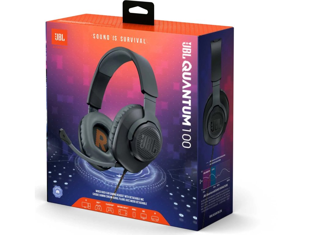 Slúchadlá JBL Quantum 100 vám umožnia prehľadne zhromaždiť jednotky a súpera. Odpojiteľný mikrofón so zameraním sa na hlas je dodávaný s funkciami stlmenia zvuku.