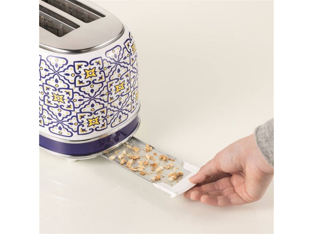 Vychutnajte si ráno v prímorskom štýle. Retro hriankovač na dve hrianky, so vzorom inšpirovaným stredomorským ostrovom Capri, vás každé ráno prenesie do slnečného Talianska. S týmto prístrojom ľahko a rýchlo pripravíte perfektne prepečené toasty pre celú rodinu, vďaka šiestim úrovniam opekania. Nechýba ani funkcia rozpekania mrazeného pečiva. Hriankovač má automatické vysunutie a vyberateľnú misku na omrvinky pre jednoduchú údržbu.