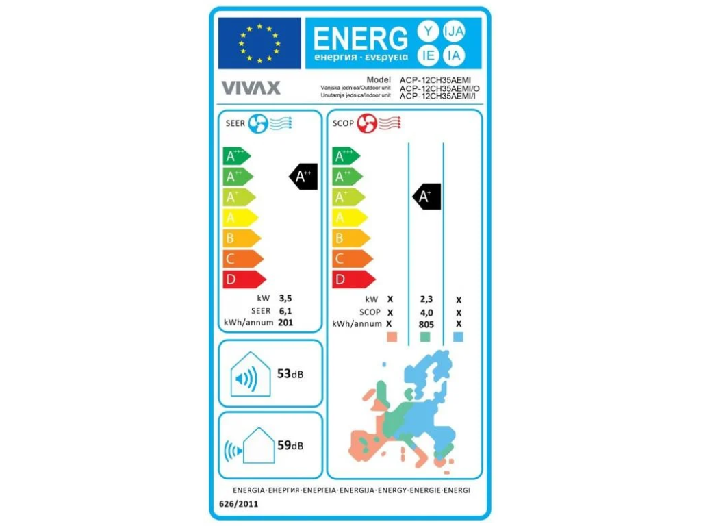 Vysoká účinnosť a výborná efektivita klimatizačného zariadenia má za následok výborné parametre a energetickú triedu A++ / A+.