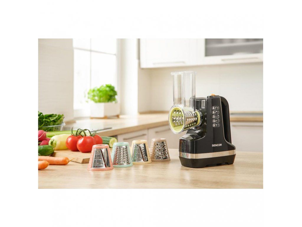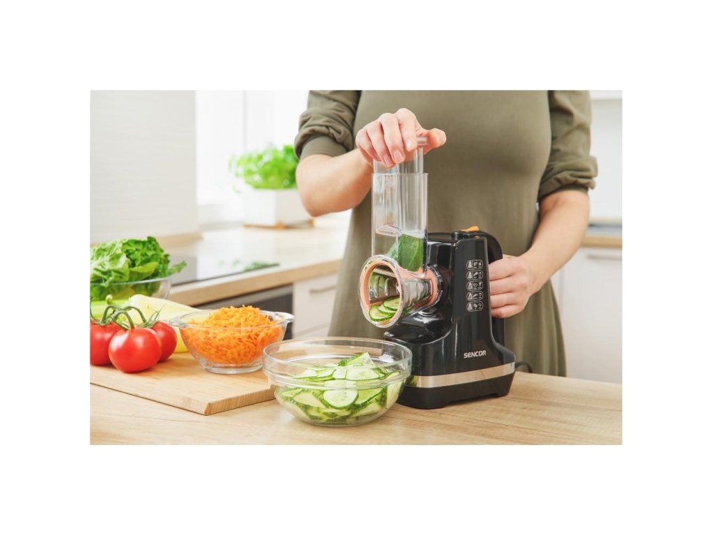 Elektrické strúhadlo Sencor SSG 4300WH má moderný ergonomický priestorovo úsporný dizajn. Plniaca trubica so šírkou 56 mm umožňuje strúhanie a krájanie prísad bez predbežného narezania. Ovocie a zeleninu je možné strúhať a krájať do misky alebo priamo na tanier. Jednoducho sa čistí a jeho prevádzka je tichá.