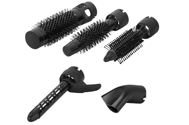 Okrem dvoch kief s priemerom 25 mm a 38 mm nájdete v balení aj bodovú kefu, kliešťový nástavec a úzky koncentrátor pre jednoduché a rýchle vysušenie vašich vlasov.