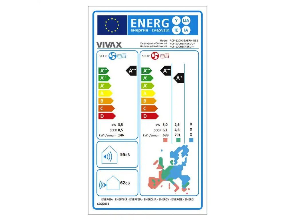 Vysoká účinnosť a výborná efektivita klimatizačného zariadenia má za následok výborné parametre a energetickú triedu A++ / A+.