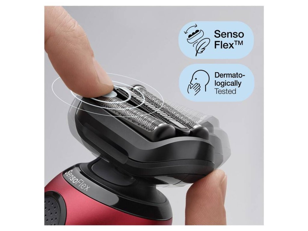 - Otočná hlava SensoFlex a tri čepieľky SensoFoil minimalizujú tlak na citlivú pokožku