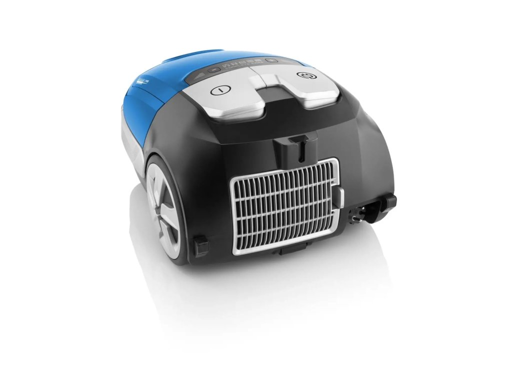 Upratovanie obývačky, spálne i detskej izby je s týmto podlahovým vreckovým vysávačom vždy komfortné a jednoduché. Akčný rádius spotrebiča činí skvelých 13 m , a tak nemusíte lux zbytočne často prepájať medzi zásuvkami. Tiež tu máte k dispozícii svetelný LED panel , ktorý signalizuje nastavenie sacieho výkonu. A určite oceníte aj mäkčené pojazdové kolieska , ktoré sú šetrné k hladkým podlahám, ako je PVC, vinyl či linoleum. Samozrejmosťou je u tohto vysávača aj ergonomicky tvarovaná rukoväť, držadlo na prenášanie a otočné predné koliesko (o 360 °). |
