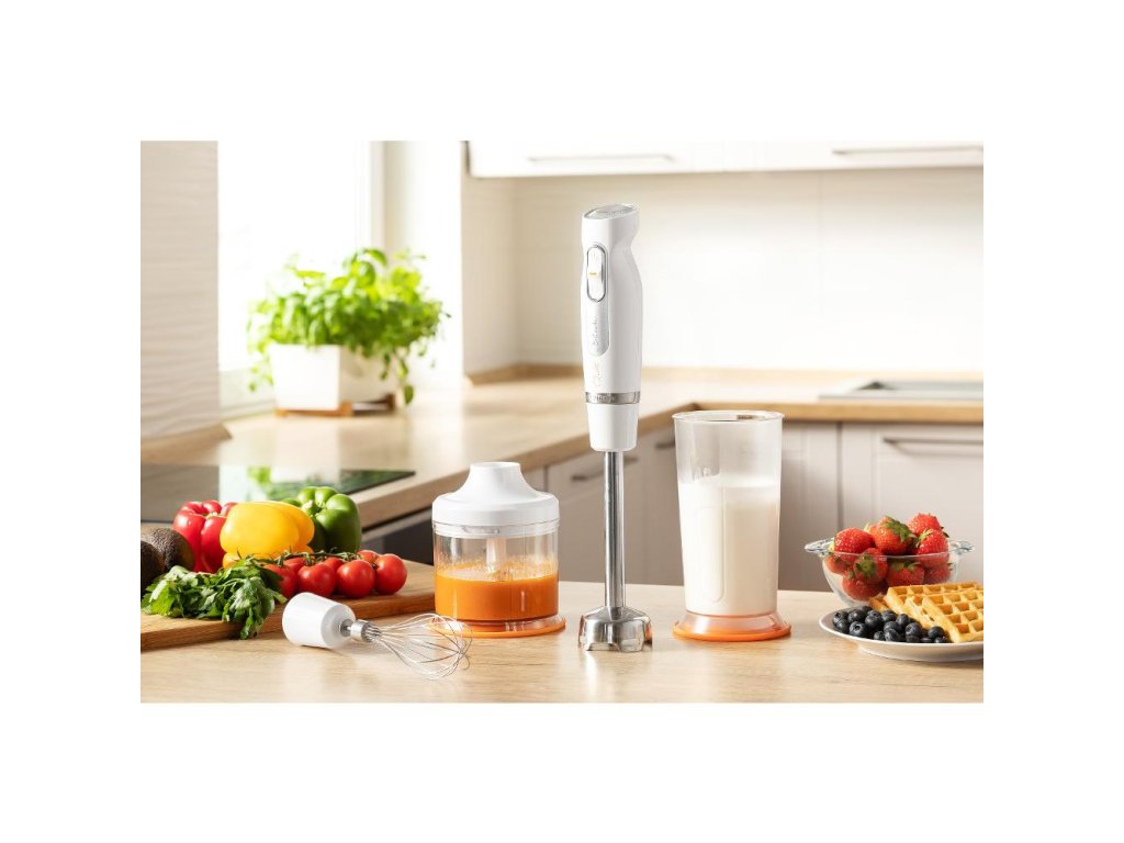 Vychutnajte si pohodlnú prípravu krémových polievok. Mixujte horúce pokrmy priamo v hrnci. Vďaka nerezovej tyči odolnej voči vysokým teplotám a ergonomickej rukoväti je úchop tyčového mixéra komfortný aj pri dlhšom používaní. Zvoľte štandardnú rýchlosť alebo maximálne otáčky s režimom Turbo a pustite sa do finalizácie receptu.