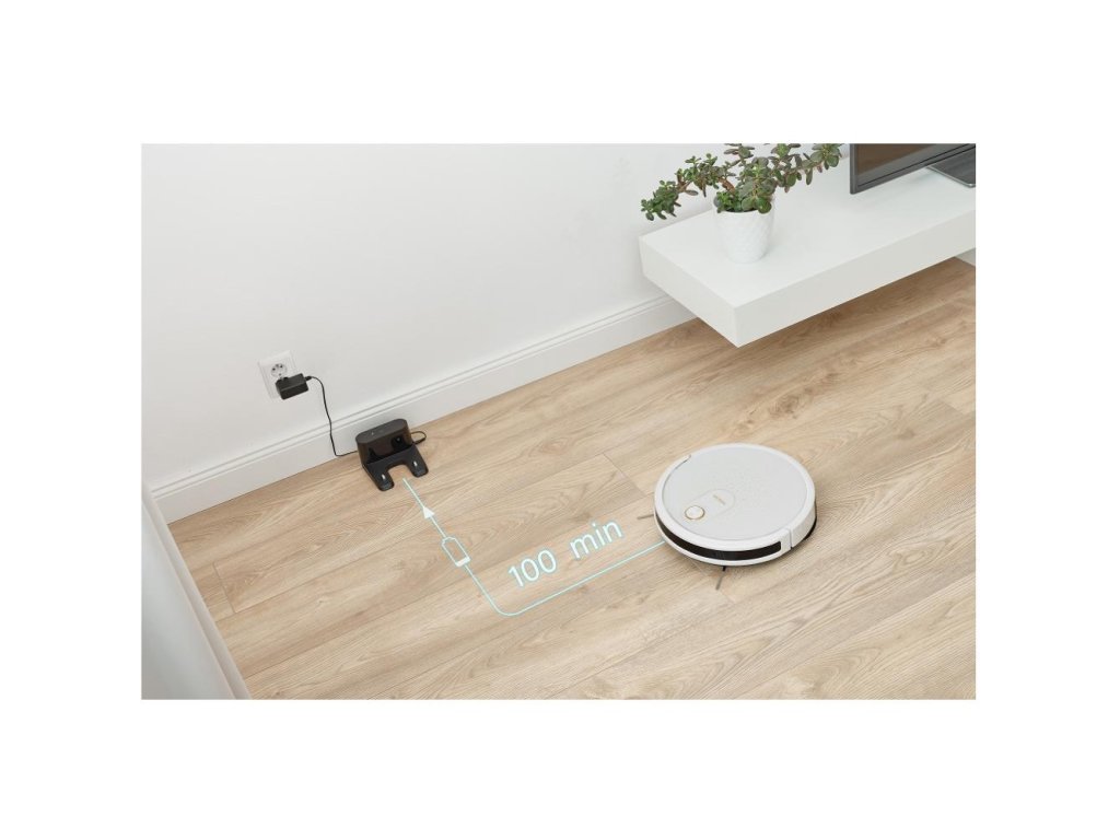 Zažite bezstarostné upratovanie. Spustite robota a spoľahnite sa, že vďaka 2600 mAh Li-Ion batérii bude venovať čistote vo vašej domácnosti nepretržite až 100 minút. Vďaka tomu je vhodný do rodinných domov aj priestranných bytov. Na konci automaticky zaparkuje v nabíjacej stanici a dočerpá energiu na ďalšiu službu.