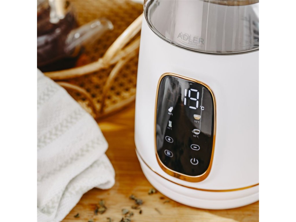 Rýchlovarná kanvica Adler AD1305 je produkt navrhnutý tak, aby pozdvihol zážitok z prípravy čaju, kávy a dojčenskej výživy so zmesou elegancie, funkčnosti a komplexných možností teplotných úrovní. Táto moderná a sofistikovaná kanvica je precízne vyrobená tak, aby vyhovovala potrebám náročných zákazníkov. Ponúka presné ovládanie teploty, intuitívny LED displej a elegantný moderný dizajn so skleneným interiérom pre zvýšenú čistotu a estetiku. Navyše, 2-hodinová funkcia udržiavania teploty zaistí, že budete mať vždy teplú vodu na ďalšiu šálku. Adler AD1305 je kombináciou štýlu, funkčnosti a inovácie, vďaka ktorej bude každý nápoj chutiť ešte lepšie!