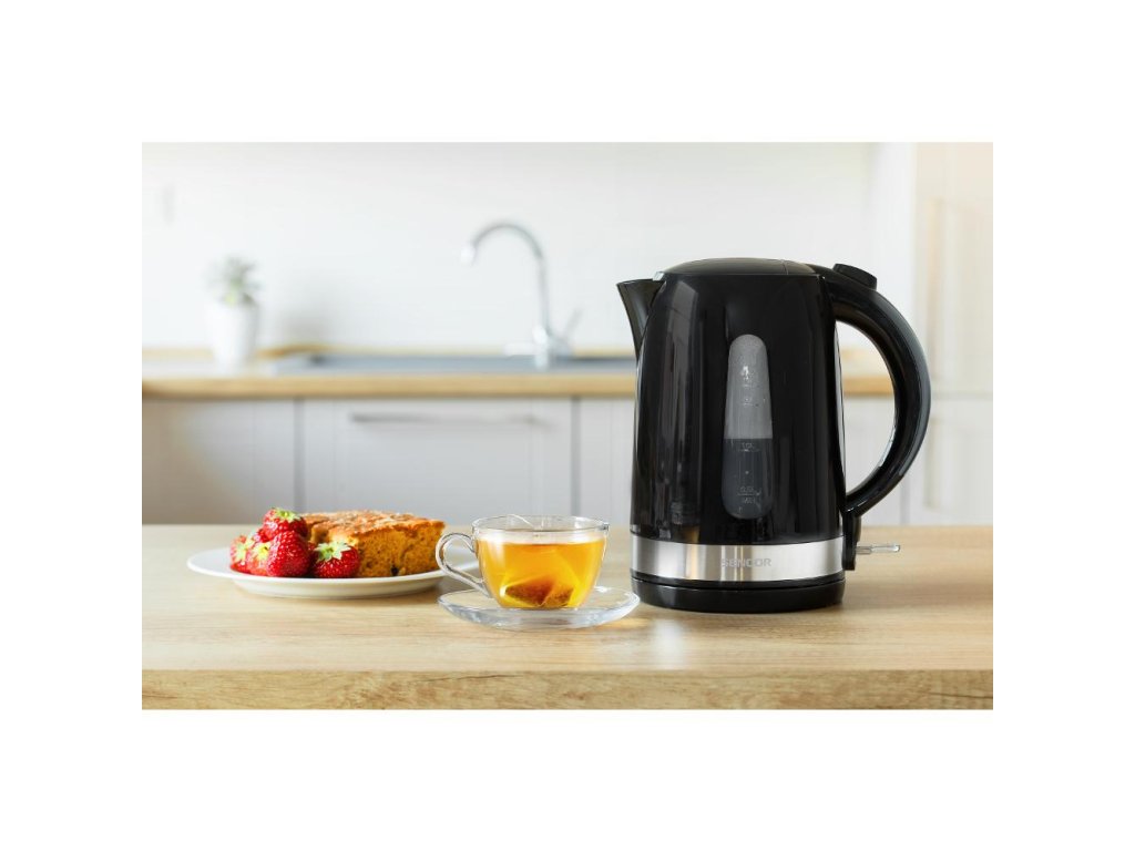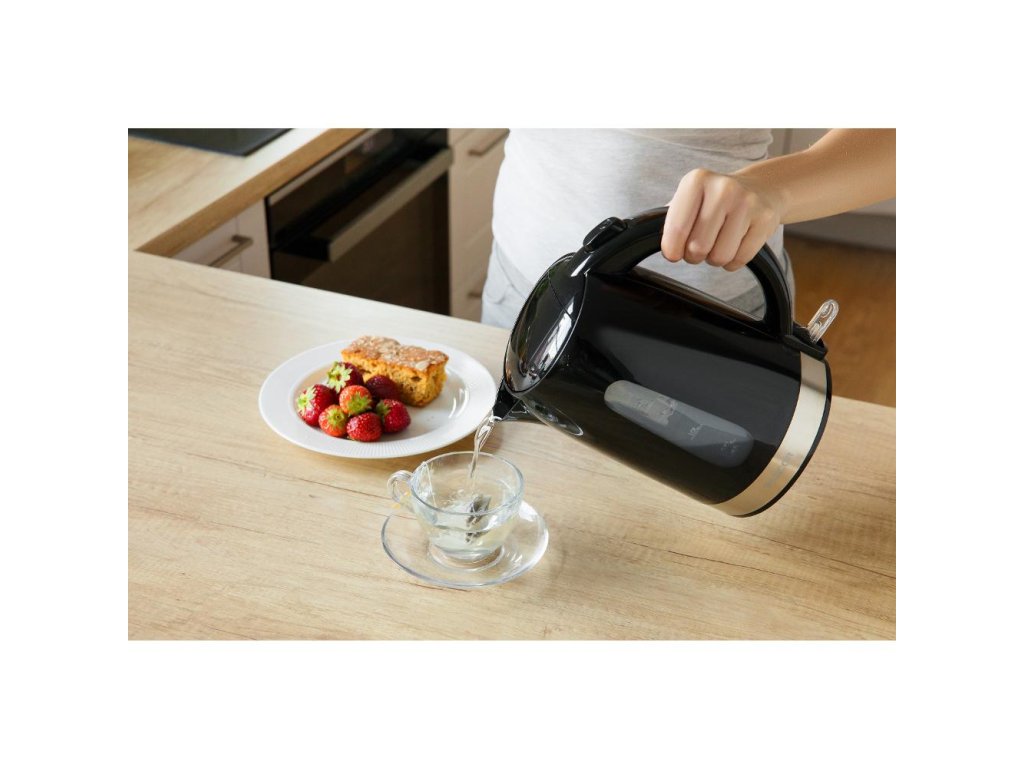 Rýchlovarná kanvica, objem 1,7 l, príkon: 2150 W, ukazovateľ aktuálnej teploty vody počas ohrevu