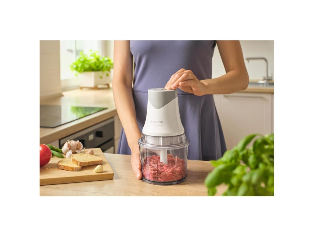 Príprava jedál pomocou kuchynského sekáčika Sencor je výrazne rýchlejšia ako zdĺhavé ručné krájanie. Praktická plastová nádoba s objemom 1 litera pohodlne pojme všetky ingrediencie. Potom si zvolíte jednu z dvoch rýchlostí otáčania a nechať zariadenie pracovať za vás. Vyššie rýchlosti zaisťujú dokonale jemnú konzistenciu, zatiaľ čo nižšie otáčky sú ideálne pre hrubšie sekanie.