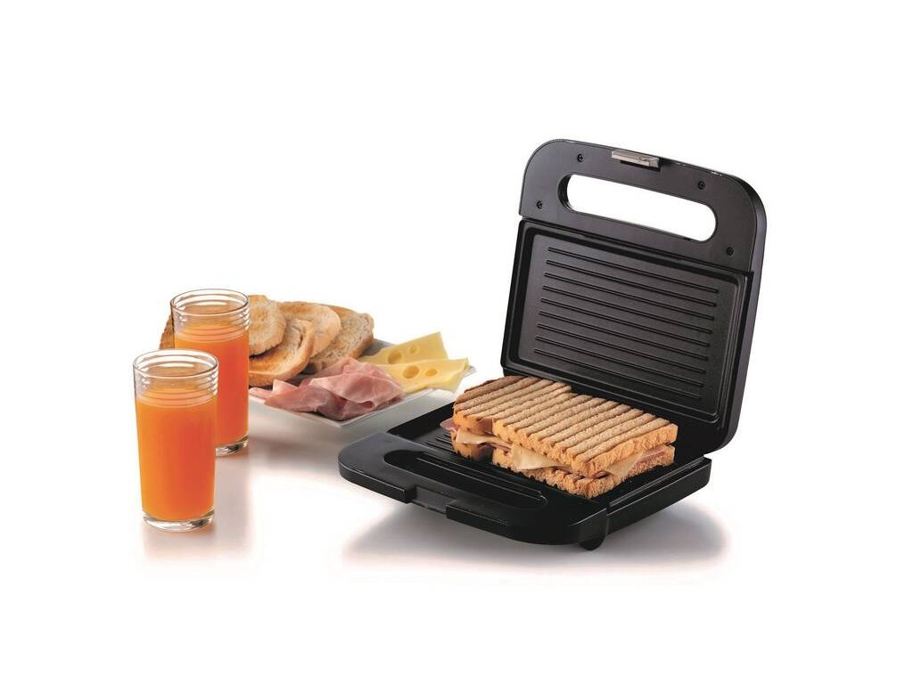 So sendvičovačom Ariete Breakfast Sandwich Maker 1971 pripravíte lahodné sendviče kedykoľvek dostanete chuť. Skvele sa hodí na rozpekanie toastového chleba aj najrôznejších bagiet. Spotrebič v modernom čiernom dizajne je vybavený vrúbkovanými grilovacími doskami s praktickým nepriľnavým povrchom . Suroviny sa teda na dosky nepripekajú, čo značne uľahčí následné čistenie. Príkon sendvičovača je 750 W . |