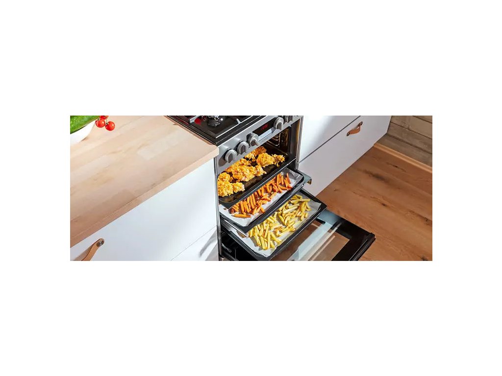 S ďalšími programami môžete ušetriť cenný čas. So špeciálnym programom pre hotové a mrazené jedlá ho ušetríte ešte viac, pretože si pripravíte chutný obed rýchlejšie, bez nutnosti predhrievania rúry. Výsledok však bude dokonalý, a tak si v kľude vychutnáte napríklad kuracie nugety, lasagne, hranolky alebo croissanty. Vnútri sa nachádza praktické osvetlenie, takže budete mať po celý čas pečenia dokonalý prehľad. V spodnej časti sporáka je praktický úložný priestor, do ktorého ľahko uložíte príslušenstvo v podobe roštu a MAXI pekáča XXL s objemom až 8 l. Nové bezpečné závesy dvierok zaručujú bez vašej asistencie veľmi tiché a šetrné zatváranie dvierok rúry. |