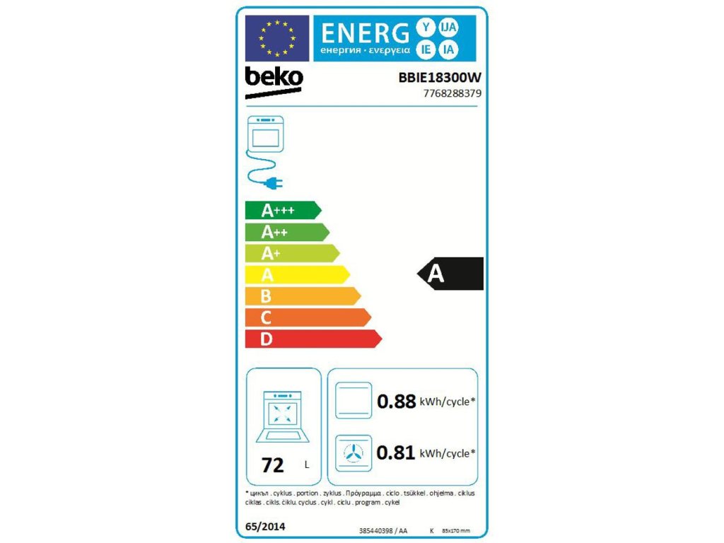 Vstavaná rúra Beko BBIE18300W ponúkne mnoho funkcií a programov zaisťujúcich jednoduchú, rýchlu a spoľahlivú prípravu jedla. Ponúkne objem 72 litrov a je zaradená do energetickej triedy A šetriacej spotrebu energie. Beko je vybavená teleskopickým výsuvom pre bezpečnú manipuláciu, osvetlením interiéru a dvojitým sklom vo dverách, ktoré uľahčujú údržbu a zaisťujú perfektný prehľad o stave pokrmov. Nechýba tiež SoftClose zavieranie.